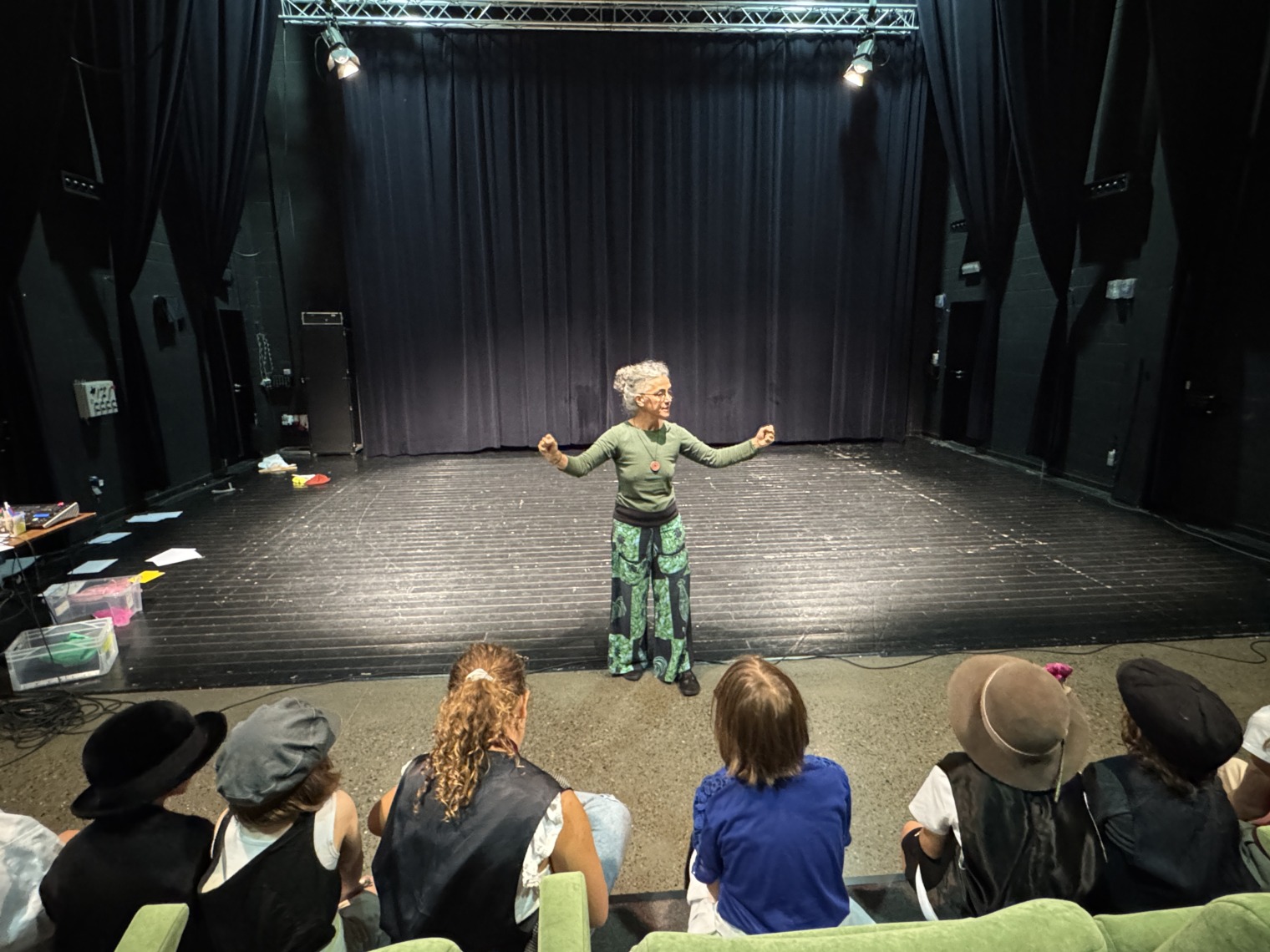 Am Ende der Woche wartet ein besonderes Highlight: In einer Werkschau präsentieren alle Teilnehmenden ihre Ergebnisse gemeinsamen. Hier fließt alles zusammen: das Spiel auf der Bühne, das Licht, der Sound, die Kostüme und Kulissen. Eine echte Teamleistung, die zeigt, wie vielfältig Theater ist und wie viel Spaß es macht, Teil davon zu sein.